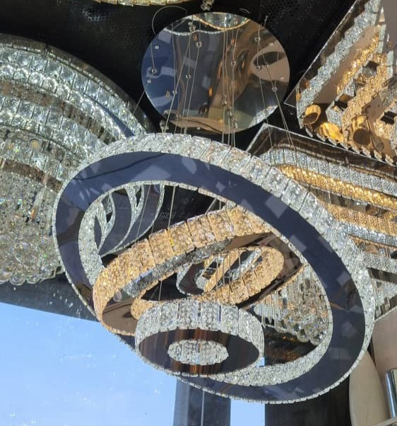 لوستر آویز گرد کهکشانی۶۰*۴۰*۲۰(سه حلقه)با کریستال درجه یک وارداتی دارای سه حالت نوردهی افتابی مهتابی و نچرال با ریموت و بدون ریموت.